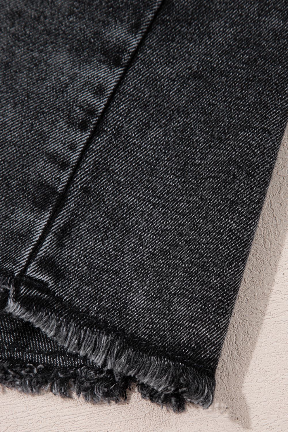 - Features: Buttoned, Pocketed, Raw Hem