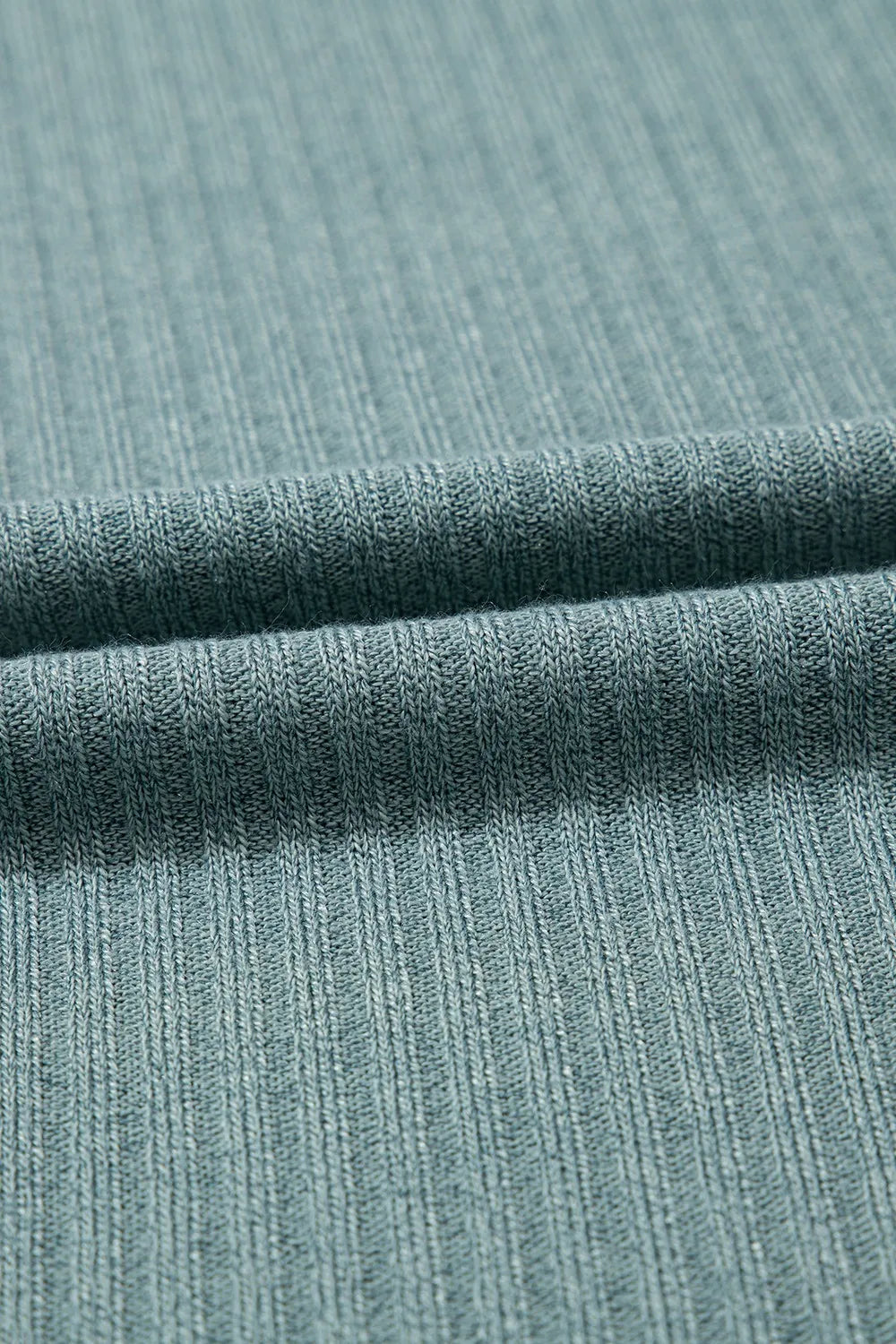 Oversized Ribbed Knit V Neck Dolman Short Sleeve Top