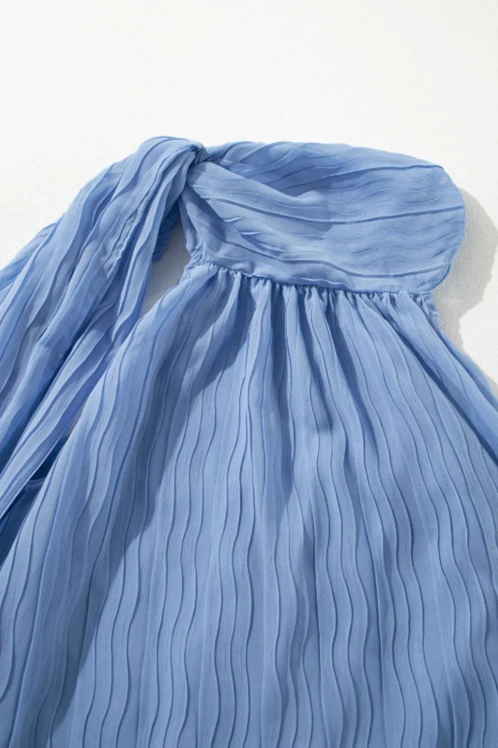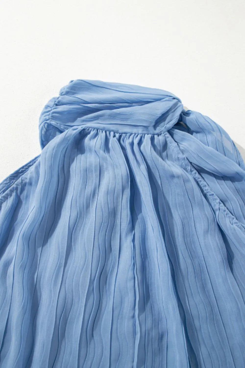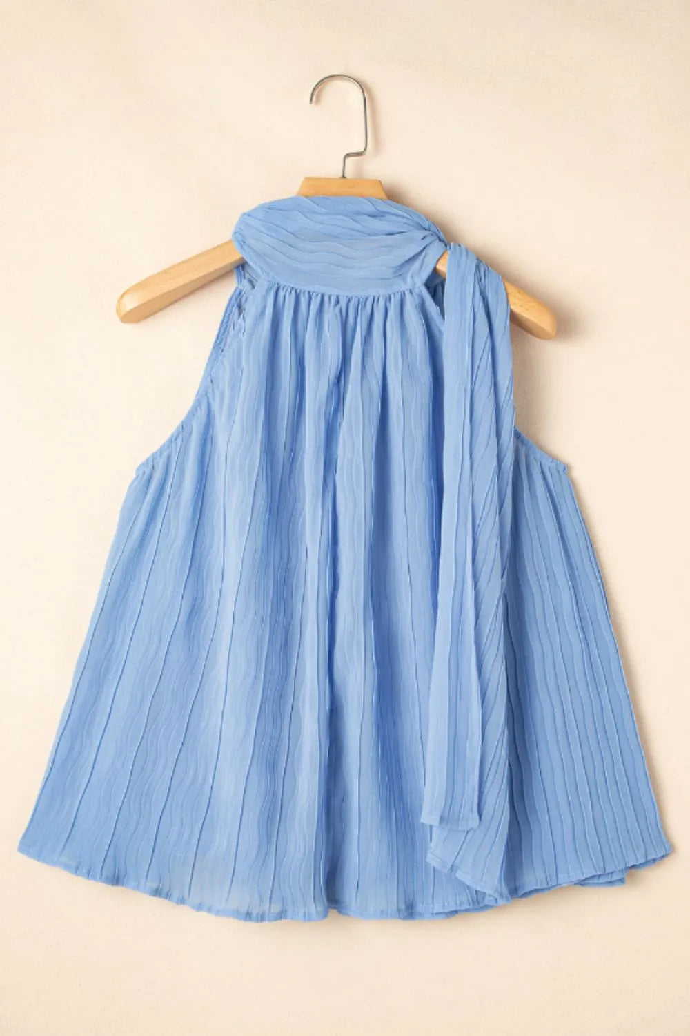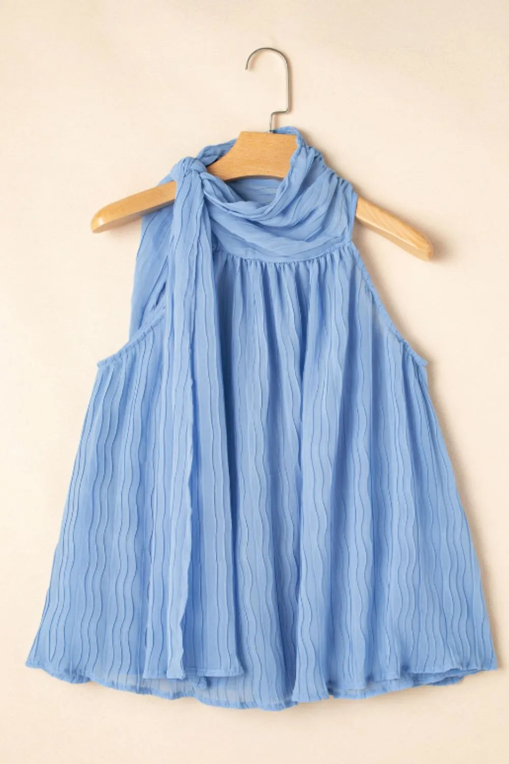 Textured Pleated Tied Mock Neck Flowy Tank Top